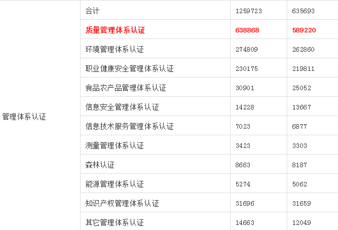 根据数据显示,截至2020年4月,全国共有有效认证证书数247万,获证企业73万。其中质量管理体系认证证书数为638868张。2020年4月获证证书按领域统计情况: